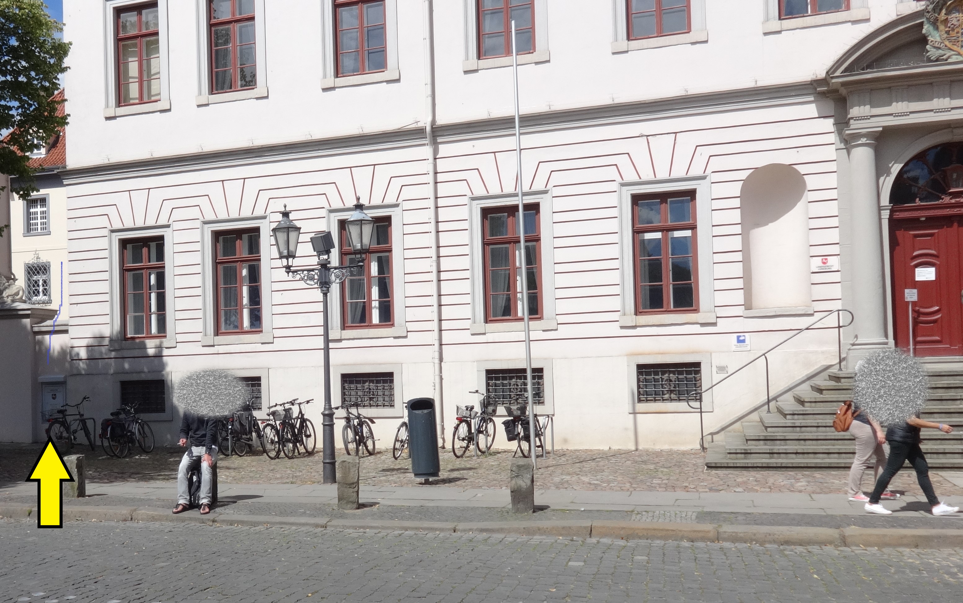 Der Nachtbriefkasten befindet sich an der Gebäudefront am Marktplatz, links von der Eingangstreppe. Er ist barrierefrei zugänglich. Der Einwurf befindet sich in einer Höhe von 1,20 m, sodass er auch für Rollstuhlfahrer gut erreichbar ist.